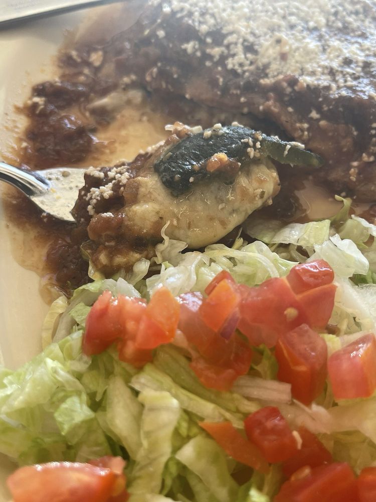 Chile pasilla relleno de queso monterrey jack. / pasilla pepper stuffed with monterey jack cheese.